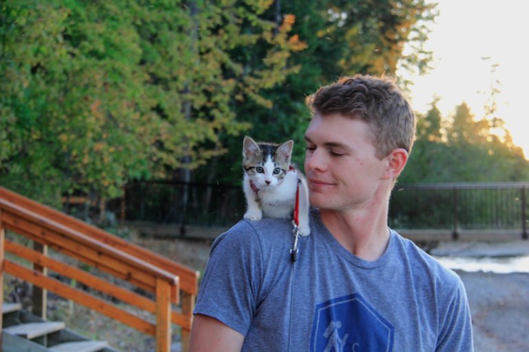 The most important characteristic of a traveling cat is a bold, curious, and adaptable nature. If you’re adopting a kitten or cat with the hopes of making them your travel buddy, look for one that shows curiosity about their surroundings. A cat that’s constantly exploring and investigating is likely to be more open to new experiences—like hopping in a carrier and heading out for a hike. On the other hand, a more timid or shy cat may require extra training and patience to get comfortable with the idea of traveling.