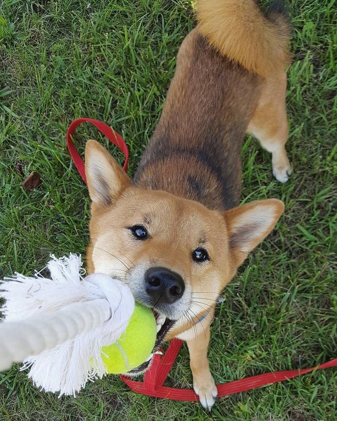 If you remember the tetherball game from your childhood, you can easily turn it into a tug-of-war game for your dog. All you need is a long, sturdy pole (wooden or metal), a rope, and your dog’s favorite toy. Drill a hole through the top of the pole, thread the rope through, and tie your dog’s toy to the end. Your dog will love pulling on the toy, either by themselves or with your help in spinning it around.